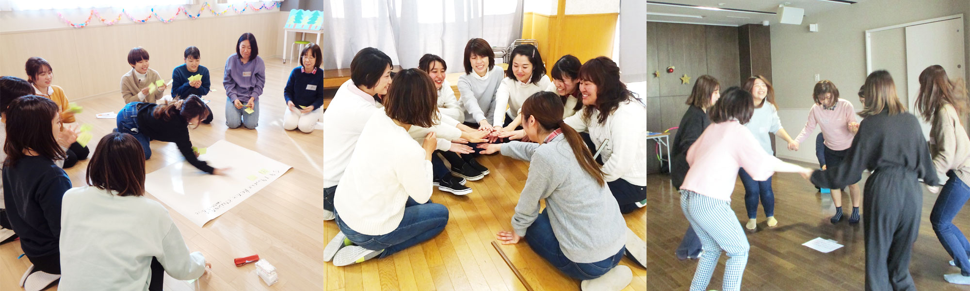 職員が成長すれば、おのずと保育や介護の質も、法人および園の質も向上すると考えています。ですから私たちは、職員一人ひとりが自らのスタンスおよび立場や役割に合わせて成長できるような教育・研修プログラムを構築しています。また、夢と希望を持って入職なされたみなさんが、初心を忘れることなく、成長しつづけ夢の実現へと希望をつなげることができるように、研修内容を進化させつづけています。